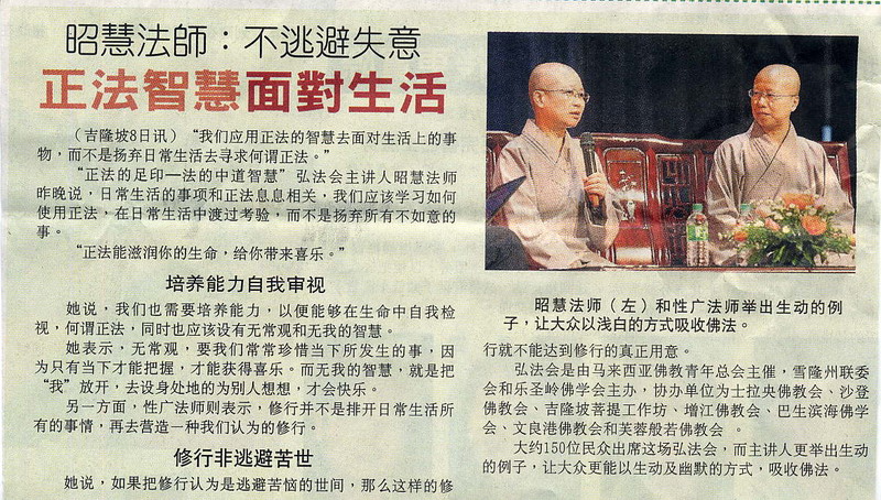 8日星洲日報報導吉隆坡弘法會。