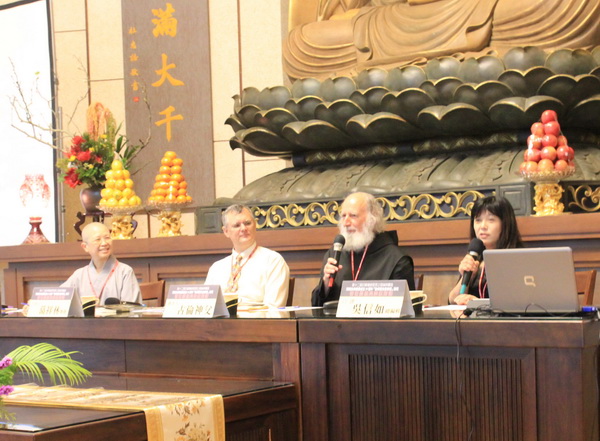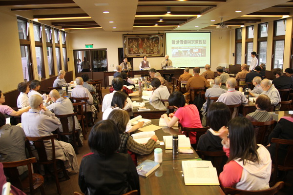 102.4.6 第一場新書發表會《你信什麼?──基督宗教與佛教的生命對話》。(左起:發表人昭慧法師、主持人葛祥林教授、發表人古倫神父、口譯吳信如總編輯)