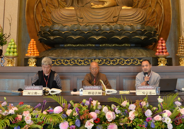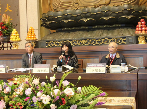 102.4.6 第一場論文研討會a場次。(左起:發表人成功大學中文系葉海煙教授、主持人南華大學宗教所陳美華教授、發表人中央大學哲研所李瑞全教授)