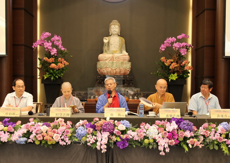 104.5.31 「學統傳承到典範轉移:從玄奘學到印順學」綜合座談會。(左起:蔡伯郎教授、昭慧法師、龔雋教授、惠敏法師、黃運喜教授) |