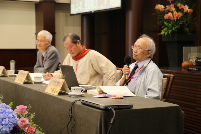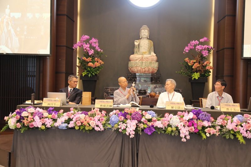 104.5.30 第三場論文發表會b場次。(左起:發表人何日生教授、發表人性廣法師、主持人羅宗濤教授、發表人鄧子美教授) |