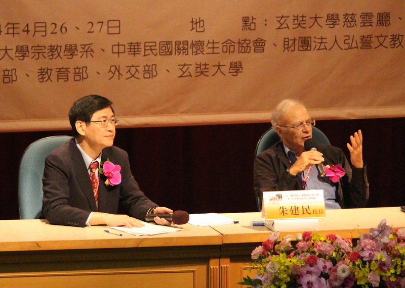 103.4.26 第一場專題演講,peter singer教授(右)主講「動物解放:過去、現在與未來」,華梵大學校長朱建民教授(左)主持。 |