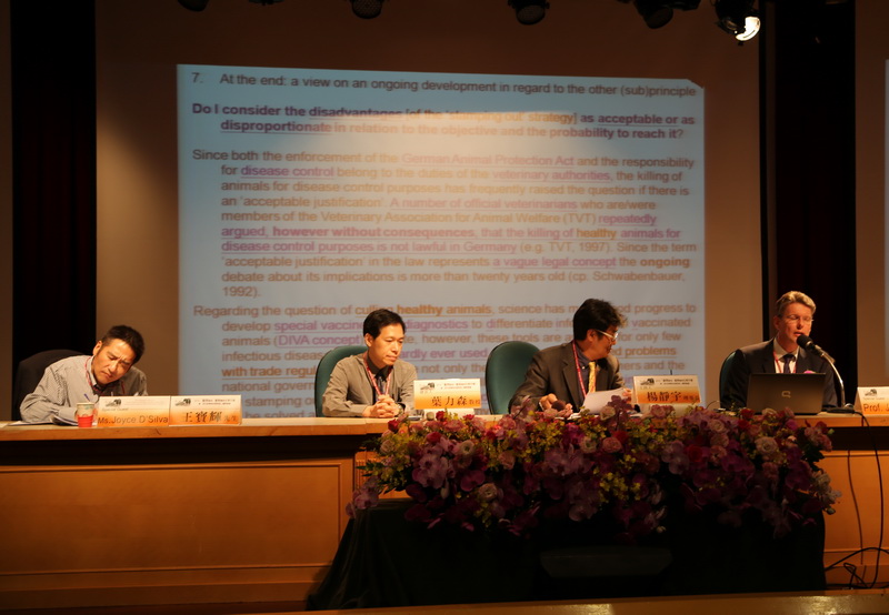 103.4.26 特別演講,左起:代joyce d’silva教授發表的王寶輝先生、主講人葉力森教授、主持人楊靜宇理事長、主講人jörg luy教授。 |