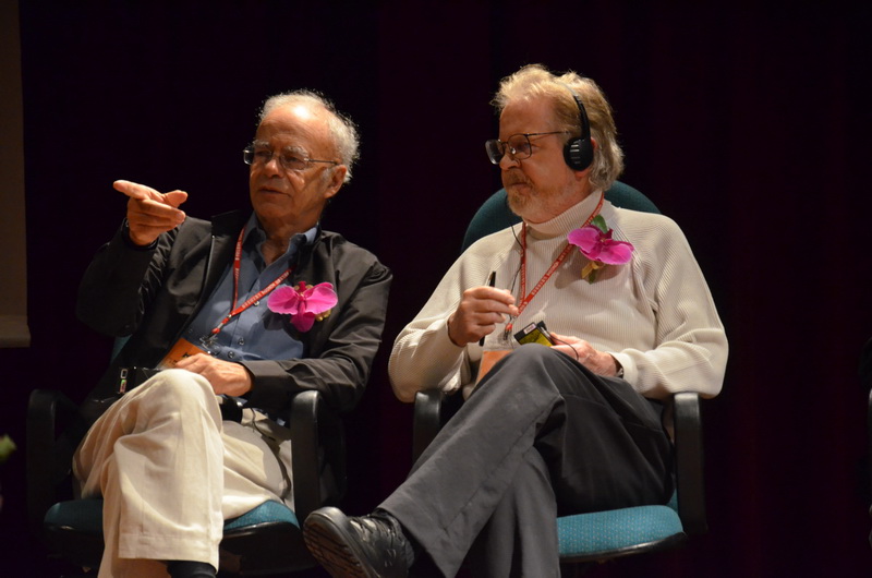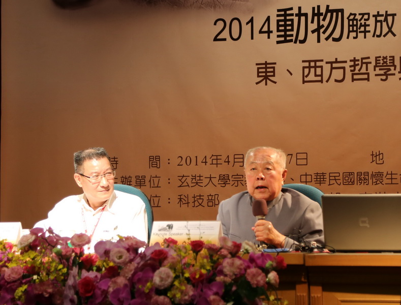 103.4.26 peter singer(左)與tom regan(右)兩位國際哲學泰斗,也是動物倫理學先驅,睽違十五年現今在台聚會,彌足珍貴!這在台灣倫理學界也是一樁盛事,華梵大學朱建民校長即讚歎云:「這場會議讓許多人一償宿願!」 |