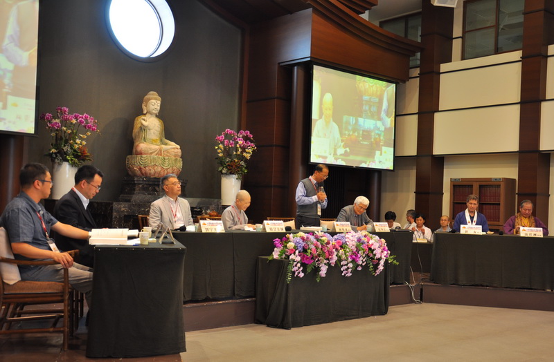 最後一場是「人間佛教的回顧與前瞻」綜合座談,左起:姚彬彬教授、宣方教授、劉宇光教授、昭慧法師、林朝成教授(主持)、侯坤宏教授、世友居士、游祥洲教授。