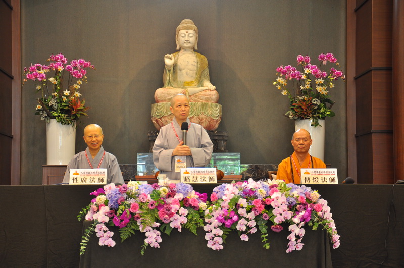 傍晚五時舉行閉幕式。左起:性廣法師、昭慧法師、傳燈長老。