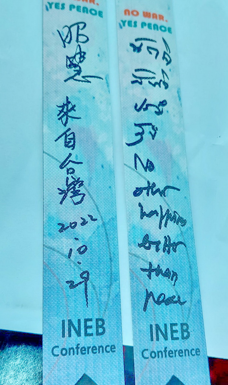 111.10.29 Ajarn Sulak與昭慧法師簽名於No war, yes peace紀念布條。 |