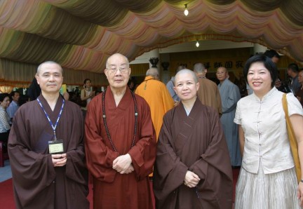 94.6.10 總統離去後,淨良長老(左二)、林蓉芝秘書長(右)與厚觀法師(左)、昭慧法師在福嚴精舍前庭合影。