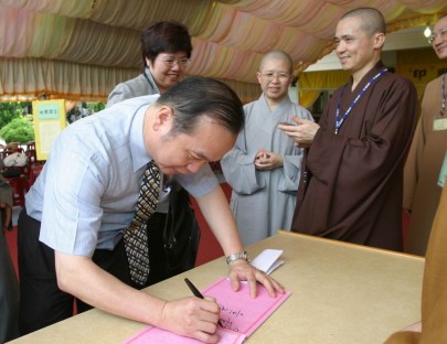 ‧下午五時許,台北市馬英九市長與葉金川副市長,在明湖路山腳下即先下車,一步步登山走向福嚴精舍,趕來表達他們對導師的祭悼之忱,再一步步走下山去,其虔誠懇切,令人感動!惜乎導師法體已經入斂,市長欲瞻仰遺容,已經緣慳一面。