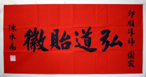 本日,昭慧法師在輔仁大學上課,總統府第二局陳烯堅副局長在楊小姐陪同下,特地前來輔大,請昭慧法師代表法眷,收下總統褒揚令。雖知導師遺囑婉辭輓聯,陳副局長仍將總統與副總統的輓幛交給昭慧法師。昭慧、性廣法師下午立即驅車送至福嚴精舍,交給厚觀法師。由於褒揚令代表國家對導師德望事功之高度推崇,因此將在10日於涅槃堂、11日於追思會場,正式陳列於香案前側。