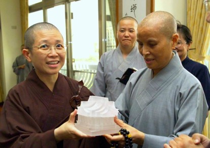 94.6.20 昭慧法師向證嚴法師說明印順導師墨寶「勝鬘經」條幅的來歷。