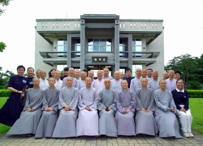 待到法師唸完,上人方才起身告辭。走到法印樓前,學生已排好椅子,期待與上人合照一張相片留念。上人明知下一個行程已經拖延許久,依然慈悲滿大家的願,坐下來與學團師生合照。她並讚歎學生說:「妳們的動作好快呀!」