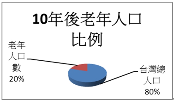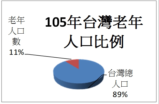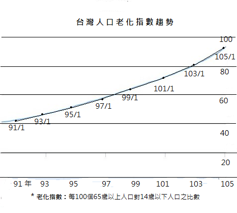 台灣老化的速度世界第一!台灣老人人口占總人口比重,105年是11%,至114年將跳升到20%;短短10年,將從高齡社會邁入超高齡社會。106年,台灣65歲以上的人口數量,將超過14歲以下的人口總數,首度交叉翻轉,台灣人口結構已出現變化,老人壽命延長,加上少子化影響,老人照護問題將愈來愈嚴重。