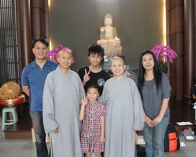 這個「佛學營隊家族」於第二屆觀自在青年學佛營離營前,與性廣法師及我合影留念。(左:爸爸游芳躅、右:媽媽林梓玲、後:哥哥游承諺、前:妹妹:游舒晴)