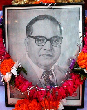 圖為1956年10月14日帶領50萬印度賤民皈依佛教的安貝卡博士像。