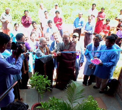 典禮結束前,昭慧法師一行人並捐款美金5,200元、台幣23,900元、印度盧比5,500元、夾克、運動衫六大包及昭慧法師所著《佛教規範倫理學》與《千載沉吟》各二本。當日落成典禮人潮絡繹不絕,人人咸感歡喜。15:00典禮畢,一行人返回Centre Point飯店用中餐。用餐時,游祥洲教授邀請法輪法師為明天在龍樹學院女眾部舉行的昭慧法師專題演講中,擔任回應人,法輪法師欣然同意。