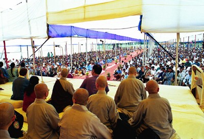 92.10.4 從台上眺望台下,坐在棚內參加典禮的信眾,數以千計(台上背對鏡頭的比丘尼眾大都是本院師生)。
