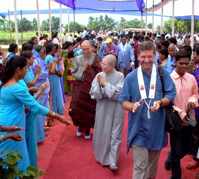 韓國法輪法師是韓國民主健將,他在菩提伽耶,致力於慈善與教育工作,關懷最貧苦的人,也希望藉由幫助釋迦族而找回佛教的根。英國倫敦大悲基金會(The Karuna Trust)主席Dhammachari Virabhadra,是第一個走入印度從事慈善救濟的西方人,30幾年前他走訪印度貧民窟,從事貧民窟教育與慈善工作。但因無法獲得印度居留證,在不得已的情況下,只好返回英國成立大悲基金會,推動貧民窟教育與慈善工作。每年以200萬美金從事救濟工作。如今在與世友先生的合作下,印度已成立60多所貧民窟幼稚園。他於致詞時,跟與會大眾分享他目前在貧民窟工作的進展、困境、理念與展望。