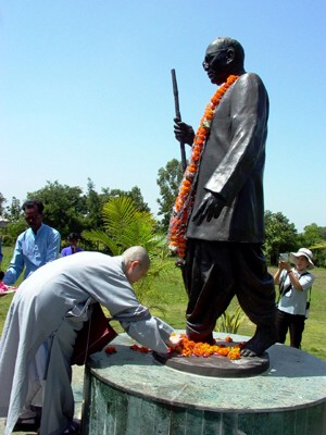92.10.4 到達龍樹學院之後,首先向領導五十萬賤民歸依佛教的安貝卡博士銅像獻花致敬。