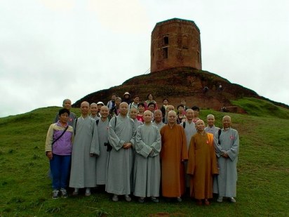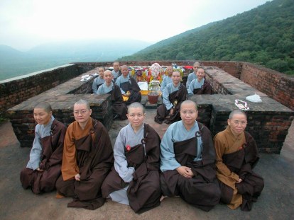 10:00參觀畢,搭車士前往菩提伽耶。途經前往韓國法輪法師道場的岔口,法輪法師曾邀請昭慧法師與大家前往參訪,惜因時間不夠,昭慧法師等贈以印度盧比6,000元、衣服二大箱及所著之《佛教規範倫理學》與《千載沉吟》二書,由前來等候的信士攜回,代以致意。