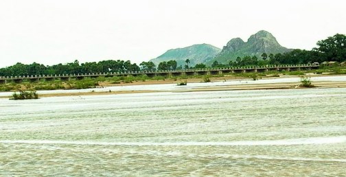 92.10.7 下午,涉水渡尼連禪河,於河中回望,遠眺苦行林與前正覺山, 佛陀曾於苦行林六年修苦行,並於前正覺山降伏事火外道三迦葉。