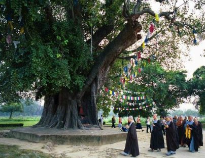 上岸後,一行人步行至不遠處的佛陀成道處——菩提伽耶,參訪菩提樹、大菩提寺(Mahabodhi Temple,簡稱大塔)、阿育王石柱、金剛座、佛陀成道四十九日所經處等。一行人在昭慧法師帶領下,念佛號繞大菩提寺三匝,並於菩提樹旁唱頌梵唄,靜坐。17:30,一行人步行回Mahayana Guest House飯店休息、用餐。