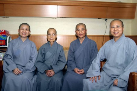 回到慈濟醫院,在導師病房外客廳合影(左起:昭慧、慧瑩、明聖、性廣法師)。