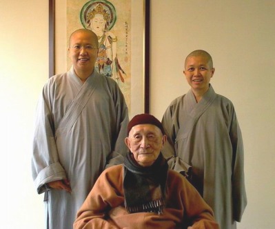 臨去之前,於尊悔樓門廳,導師與昭慧、性廣法師合影。