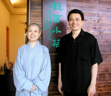 李老師與昭慧法師於觀音小築前合影(91.9.4檔案照片)。
