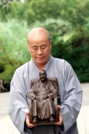 ♦94.6.27 新竹法源寺住持寬謙法師致贈本院楊英風教授之「印順導師銅雕」。