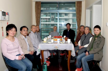 是日,馬夫人黎雪花女士及心皓、德進二位比丘尼法師,亦在此等候大家。兩位尼法師來自福建廈門閩南佛學院,心皓法師任教閩院尼眾部本科,德進法師刻在研究生部就讀。馬居士特供養兩位機票,讓她們到上海來親近昭慧法師,聽聞明、後兩天在上海復旦大學所舉行的系列演講。在精舍茶敘時,由於林正有居士詢及「對南傳與藏傳佛教在漢地急速發展的看法」,馬洵侃居士問及「佛教儀式改革」的問題,於是引發昭慧法師一系列見地獨到的答問,大家聚精會神聆聽,談話會欲罷不能。