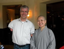 德國肢障奇人施密特牧師與昭慧法師合影於Schillergarten餐廳。(100.6.2)