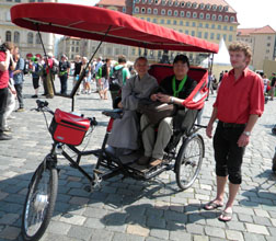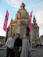 下午回旅館稍事休憩,接著古倫神父帶大家遊覽德勒斯登老城的市中心。老城禁止車輛駛入,因此將車停在稍遠的IBIS Hotel廣場,再沿路逛進老城。由於古倫神父在德國是十分知名的心靈導師,因此時常有人認出他來,上前向他打招呼。當晚在河畔的Kutscher餐廳用餐時,還有一位客人跑來問他:真的就是古倫神父本尊嗎?可能她還以為神父是街頭藝人打扮的呢!
