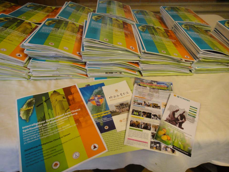 除了構思企劃案、申請教會日活動與現場翻譯之外,單位間的種種協調與聯繫、會場的圖像設計、德語節目單與PCT簡介之製作、一行人往返機位的預訂與在德期間的食宿、行程,都是信如一肩承挑作安排的。在申請案通過之後,她還於三月間先飛赴德勒斯登以觀察聖堂場地,並以實地觀察內容作為基礎,來進行會場掛圖的設計、跨宗教禮拜流程與主賓入出場的動線規劃,這都是非常繁瑣、耗時的工作。