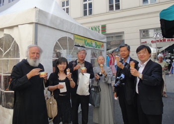 於是,就在跨文化、跨國度、跨教派、跨宗教的奇妙結合下,我們一行九人——PCT議長石連城牧師、總幹事張德謙牧師、台南神學院教師(以下簡稱「台神」)王貞文牧師、《教會公報》總編輯張嵐亭牧師、彰基張文信副院長、在維也納牧會的PCT陳啟應牧師、蕭珮芬牧師娘、信如與我,共同參與並見證了這場殊勝的宗教盛會。