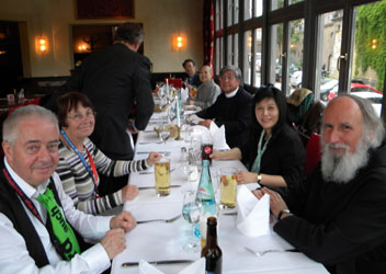 禮拜結束後,原本安排PCT團員拜會柏林差會主任的一場午宴。然而由於禮拜圓滿結束後,聽眾與主講人的雙向溝通欲罷不能,時間略有延擱,當驅車至易北河畔美麗的Schillergarten餐廳用餐時,柏林差會主任Roland Herpich與幹事Theilemann先生已在餐廳等候多時。此外,曾應PCT邀訪台的德國肢障奇人施密特(Rainer Schmidt)牧師,不但趕來參加禮拜,並且一同前來用餐。