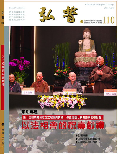 2011/04發行 整本PDF檔 110期專題:以法相會的祝壽獻禮── 第十屆印順導師思想之理論與實踐暨傳道法師七秩壽慶學術研討會