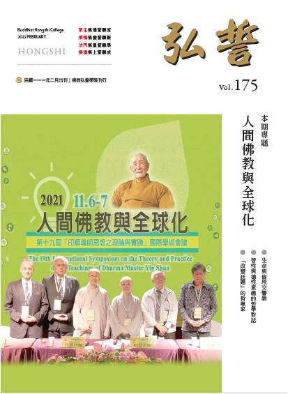 封面說明│一期一會,把握時代脈動,分享思想的火花。2021年11月6、7日,第十九屆「印順導師思想之理論與實踐──人間佛教與全球化」國際學術會議閉幕式。(左起:慈濟醫療財團法人執行長林俊龍、慈濟教育志業執行長王本榮、性廣、昭慧法師、李瑞全、黃運喜教授)