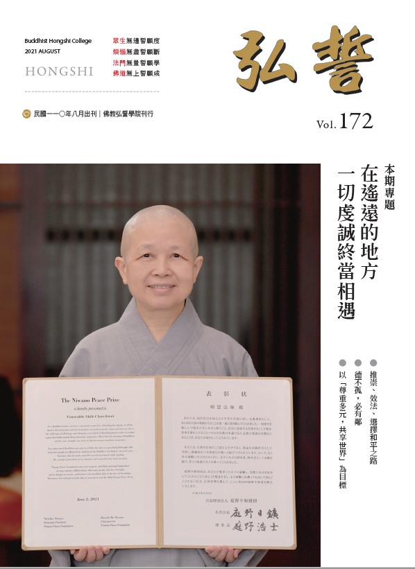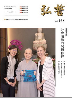 封面說明: 美國南加大宗教與公民文化中心(USC Center for Religion and Civic Culture)專案計畫訪談昭慧法師。此一訪談計畫具有全球性,分別訪談世界上一百位致力於服務社會的傑出人士。 此番赴台灣訪談昭慧法師的是資深記者茱莉亞‧莉布立荷(Julia Lieblich)。Julia抵台,與翻譯袁筱晴居士一同來到佛教弘誓學院。Julia致贈昭慧法師一幅手織桌墊,那是她在瓜地馬拉擔任一位兒童的教母(Godmother),該兒童的母親親手織作的。 左起:翻譯袁筱晴居士、昭慧法師、記者茱莉亞‧莉布立荷(Julia Lieblich)。