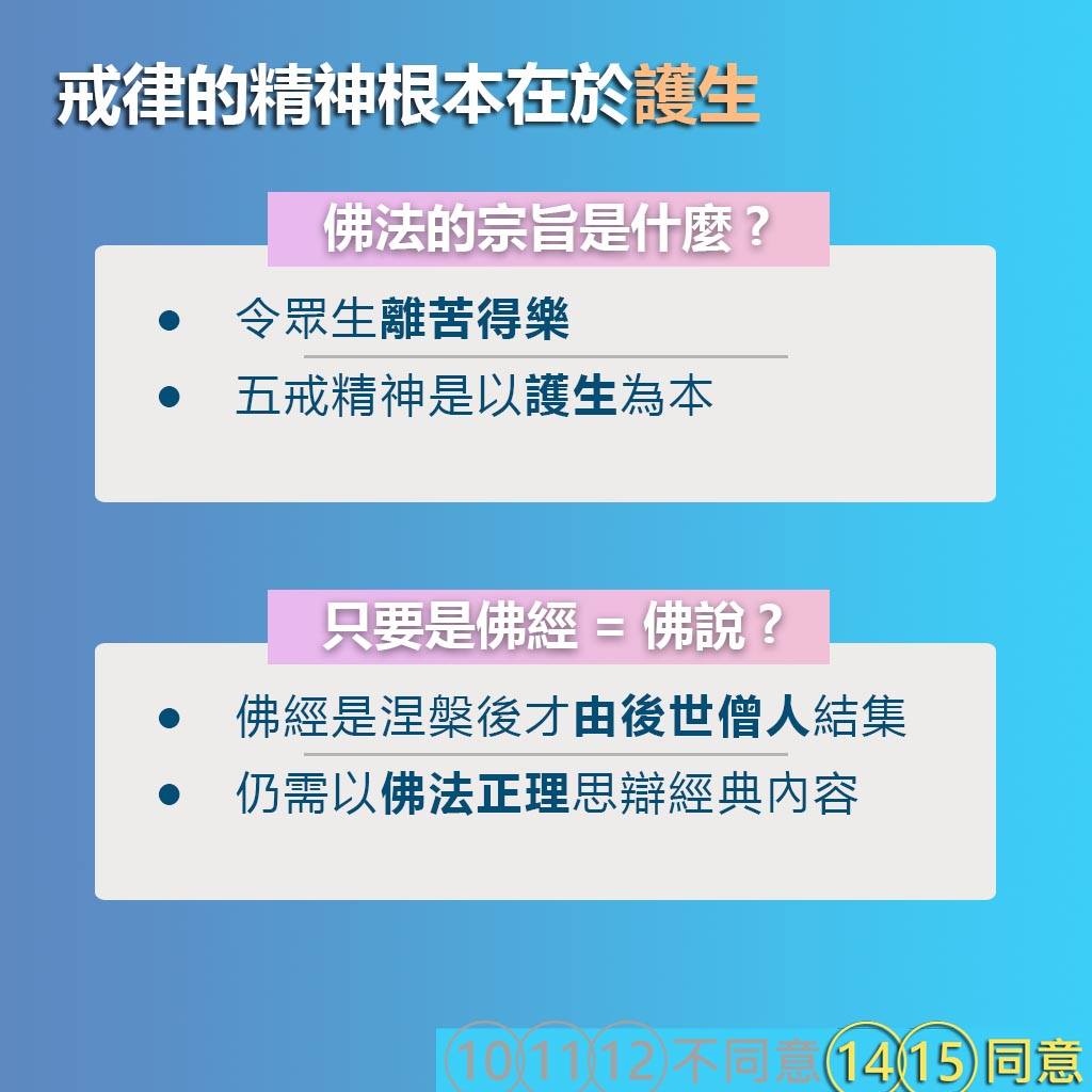 我的思維脈絡很簡單:佛法是「緣起論」,每位眾生的因緣果報千差萬別,無法齊一。因此必須回歸到佛陀所關切的基礎:令眾生「離苦得樂」!