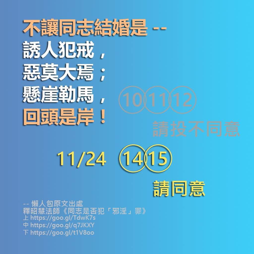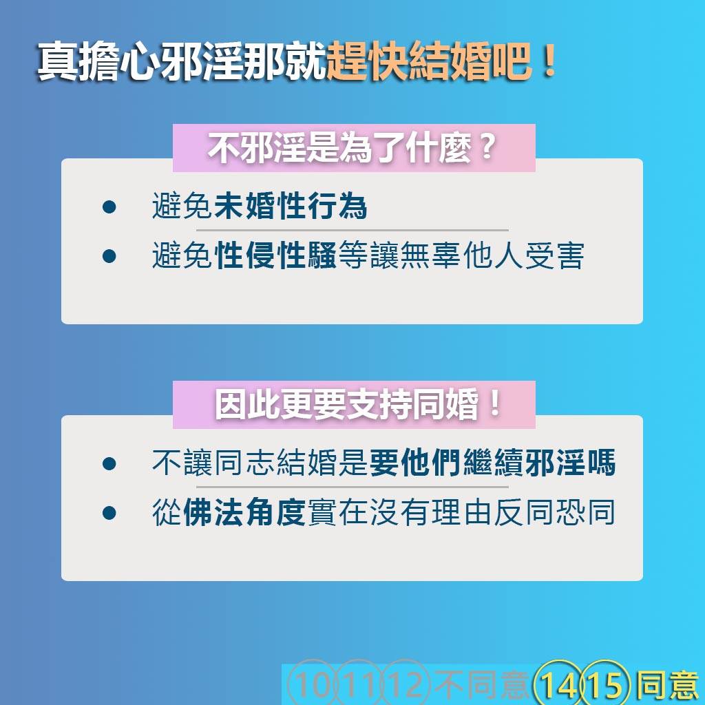 非常感恩一位臉友,立即制作了針對佛友的「同志公投懶人包」,並已惠允大家輾轉傳送。因此,歡迎大家廣為轉貼、分享!