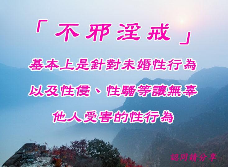 「請問法師,未婚性行為是真的算邪淫戒規範範疇嗎?還是說,那張圖算是一種對傳統觀念的一種方便說呢?」