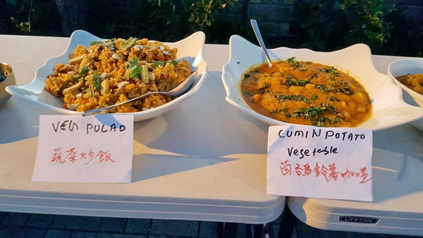 傍晚賞月餐,除了月餅與文旦,在9位玄奘大學印度同學與4位印度友人規畫下,端出豐富的印度佳餚與印度奶茶。