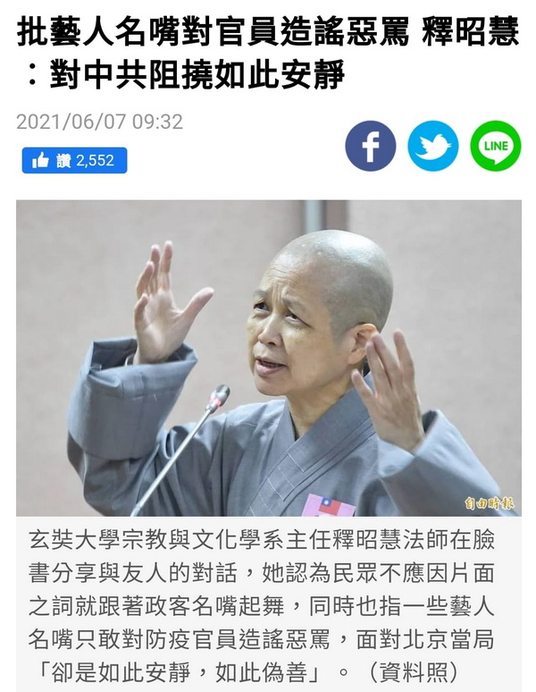 最奇葩的是,我從來不看電視,也不知張小燕與沈春華這兩人到底在哪個節目裡,為了疫苗而向政府開炮。我只是在Line群組中,就著大學老同學所貼的網址,點進去閱讀一篇《風傳媒》文章,不以為然,於是就著文章中所舉證的張小燕與沈春華話語,直接剪貼在我的Line貼文中,然後加以反駁。