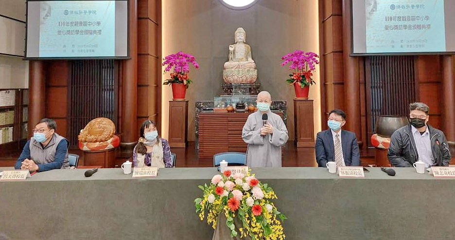 10月25日上午,佛教弘誓學院舉行桃園市觀音區愛心獎助學金頒贈典禮,觀音高中林振清校長、新坡國小陳瑞蘭校長、崙坪國小陳志奇校長、上大國小呂天得校長親蒞會場,以及觀音區六校主任、組長13人,受獎學生共42人,共有59位師生到場。