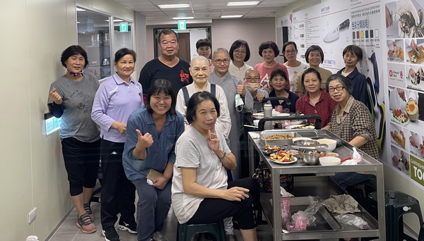 照片:右邊第一位穿格子襯衫者即是鳳嬌,11月17日於玄大雲來會館中央廚房,擔任研討會香積組志工)