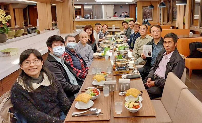 晚上依慣例以餐敘方式,於雲來會館召開生命禮儀教師社群會議,順便把剛出版的新書拿來贈送老師們。會後,老師們拿著新書分別與我合影。