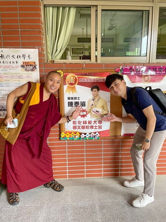 泰璿是本系傑出碩士班畢業生,他的佛法與國學根柢紮實,漢藏對譯一流,常為仁波切與格西擔任口譯員。以此資歷,我們聘他為藏傳佛教研究中心執行長。他住在中部,所以就近報考彰師大國文系博士班並順利上榜。