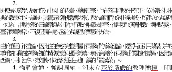 原以為這麼處理就已大功告成,但晚上在花蓮慈善寺講完《長阿含經》,回到寮房後,打開電腦一看,全篇文字都擠到一塊兒(如照片二),而且怎麼修改都動彈不得。整篇文章的排版也已完全走樣,簡直慘不忍睹。當場為之傻眼,只好發訊息到籌備群組,向同仁們略作說明,先行收回這份面目全非的二修稿,並且點出清晨傳出的初稿,乖乖地一字一字重行校勘,並順手增補了幾處註腳。剛才終於告竣,已將這篇三修稿傳送了出去。