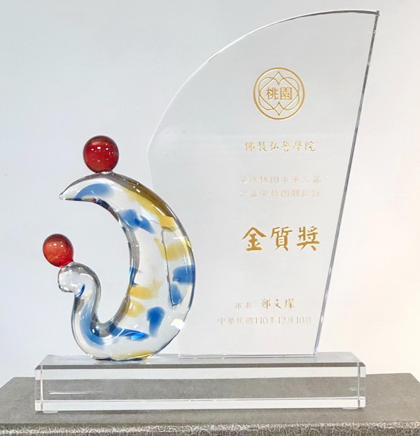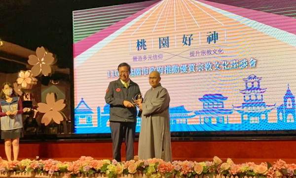 110年12月10日上午,住持明一法師與監院心謙法師代表本院至桃園市政府假鉑宴會館受獎。鄭文燦市長親自主持頒獎典禮,並頒發設計精美之獎牌。